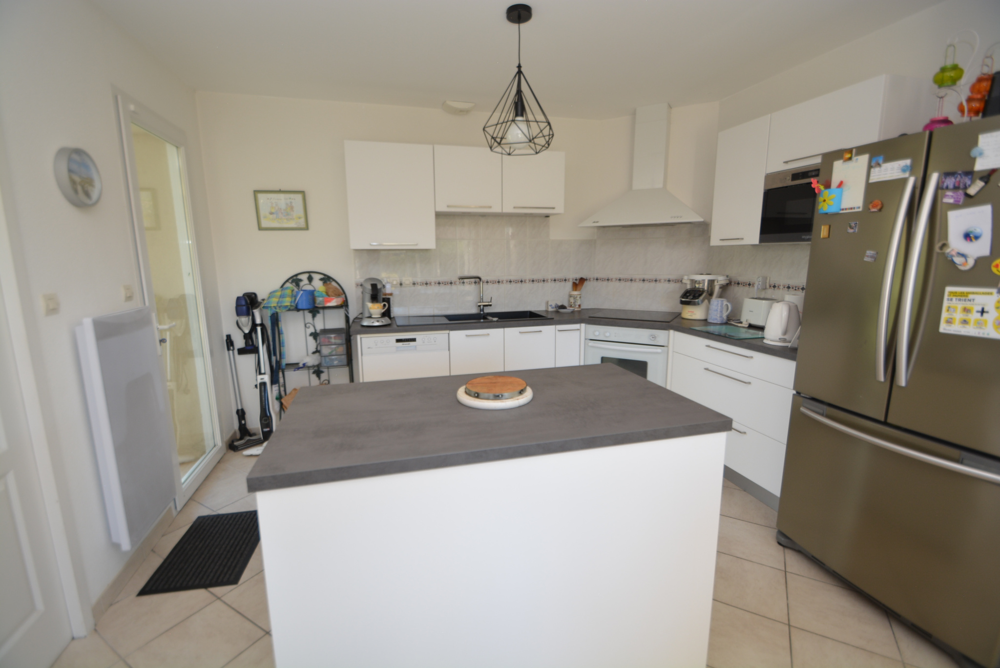 À VENDRE, Jolie MAISON de construction "traditionnelle", lumineuse, très bien entretenue et à l'agencement optimisé, composée de 5 pièces principales et agencée comme suit : SÉJOUR/SALON avec cheminée « insert » donnant sur terrasses, CUISINE « américaine » aménagée, COULOIR DE DÉGAGEMENT, SUITE PARENTALE avec SALLE D’EAU + W.C., 3 CHAMBRES avec placards, SALLE DE BAINS, W.C. indépendant + Garage attenant avec porte coulissante, Terrasses carrelées, avant couverte, latérale avec store banne électrique et arrière + Piscine enterrée 8 x 4 (= liner), chauffée (= pompe à chaleur), au sel, avec un volet électrique immergé et sa plage en carrelage et son Local technique annexe, de plain-pied sur une belle parcelle de terrain paysager et clôturée de 794 M². Situation très attractive : en bordure de piste cyclable, au calme, à deux pas du Bourg et de ses Commerces.. à proximité immédiate des écoles.. collège.. du Lac.. et à 12 Km de l’Océan… Maison disponible au 15 septembre 2026…